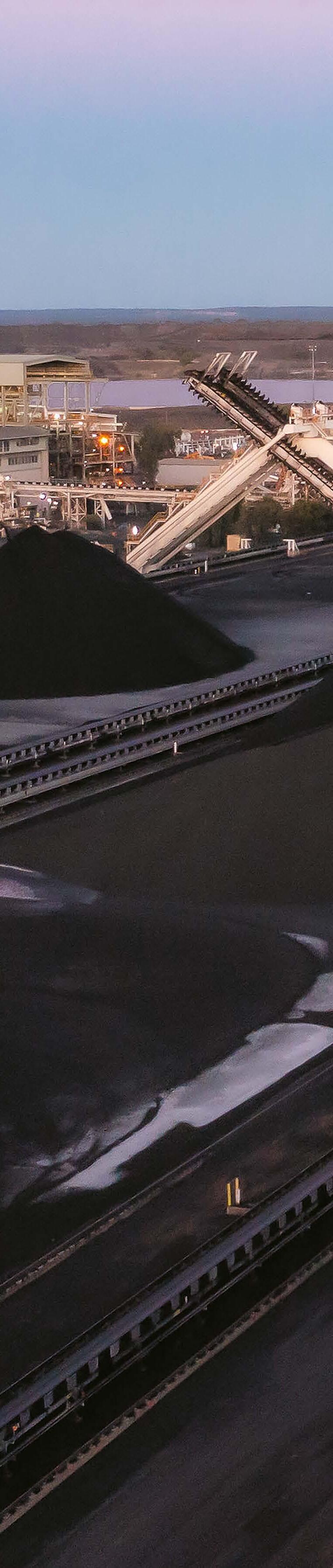 Kestrel extracts metallurgical coal from the German Creek coal seam, via the underground longwall mining method. The mining process delivers Run-ofMine (ROM) coal onto a 7km overland conveyor directly to the Coal Handling and Preparation Plant (CHPP) for washing. Then to our dedicated train loadout for delivery to our international customers via Gladstone Port.