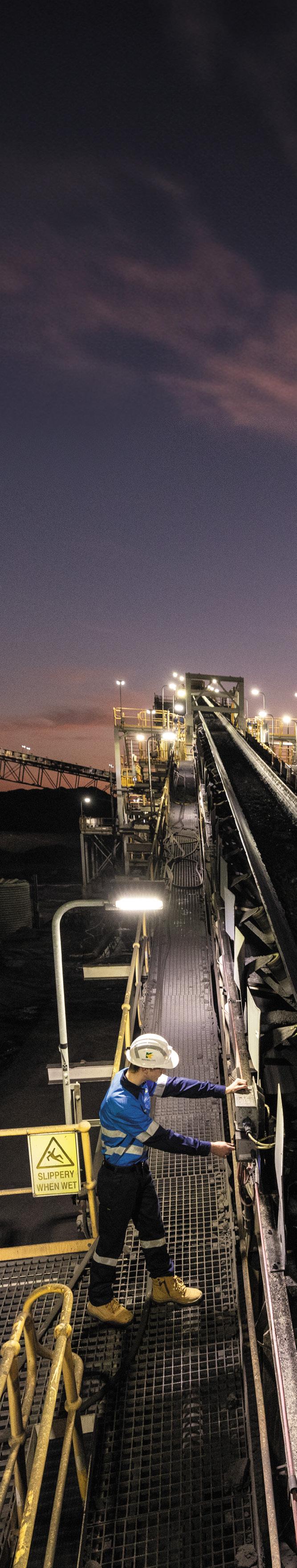 Kestrel extract metallurgical coal from the German Creek Coal seam, via the underground longwall mining method. This mining process delivers Run-ofMine (ROM) coal onto a 7km overland conveyor to the Coal Handling and Preparation Plant (CHPP) for washing. Then to our dedicated train loadout for delivery to our international customers via Gladstone Port.