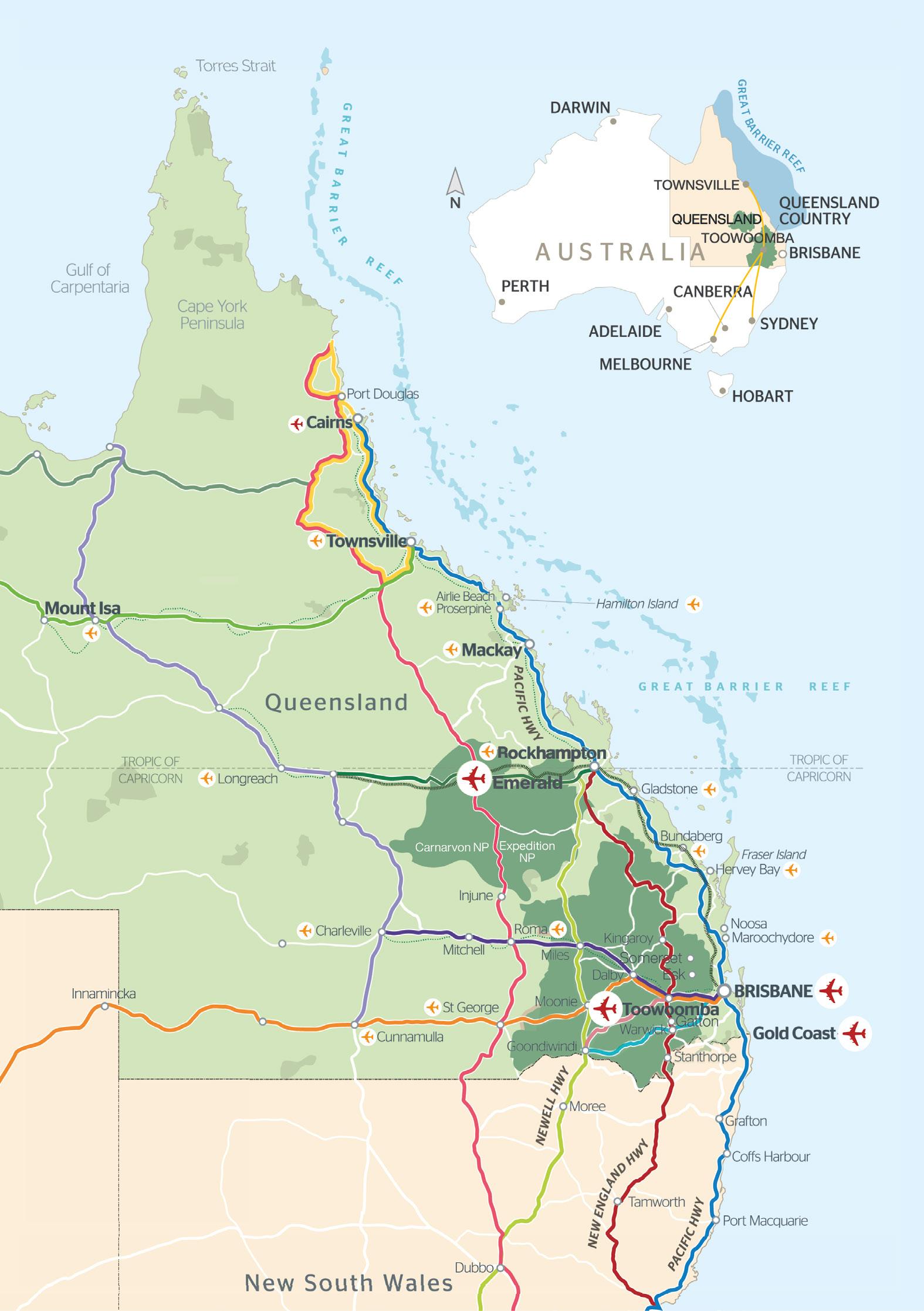 Experience the largest sapphire fields in the Southern Hemisphere as you journey through the Central Queensland Highlands in the north, the flourishing crop country of the Lockyer Valley and Somerset in the east, Queensland’s cotton capital of Goondiwindi in the west; the tranquil lakes and weirs and the ancient Bunya Mountains of the Western Downs, then head south to Australia’s highest wine region - the Southern Downs