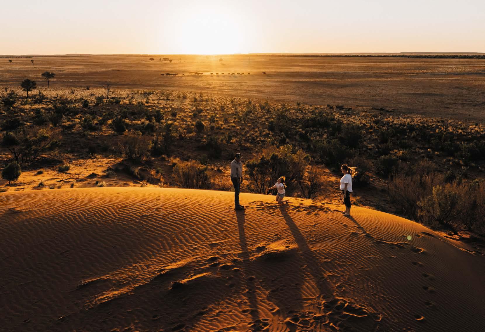 a 95-million-year-old dinosaur bone, join the Australian Dinosaur Giant’s tour at the Eromanga Natural History Museum. Explore the Reception Gallery with its Interpretive Corridor, Multi-Media Theatre Experience and café with a view. Extend your visit with one of their exclusive experience packages featuring accommodation in their 4-star onsite Cooper’s Country Lodge and tailored dinosaur and meal options. Back in town, call into the Royal Hotel, built in 1885 and follow the historical walk. Be sure to get a photo of the life-size art sculpture of a Sauropod and her two babies at Knot-aSaurus Park and visit the Eromanga Living History Centre.