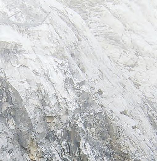 verwandelt den Stein in ein glänzendes Naturwunder, in ein Wasserheiligtum. Solche Steine liegen zahlreich in der Plima, vor allem unter den Wänden des einstigen Zelimbruches. Aber was ist los mit dem Marteller Marmor? Die gewaltigen Marmorschichten, die im Laaser Tal beginnen, setzen sich fort über die Göflaner Alm in Richtung Martell, werden vom unteren Martelltal durchschnitten und finden sich wieder gegenüber im Montaniger Bruch. Dieses Streichen der Marmorschichten setzt sich dann fort bis ins Passeier- und Ridnauntal bei Sterzing. Die Beschaffenheit des Steines ändert sich laufend. Das Material ist zwar weiß, wird aber von blauen und gelben Streifen durchzogen. Und so ist es gekommen, dass der Marteller Marmor - auch wegen des schwierigen Abtransportes - aus der Mode gekommen ist. Der weiße Marmor ist vor allem ein Kalkstein, wobei die Anteile des Kalkes schwanken. So gilt die „Weiße Wand“mit dieser Einschränkung- als mächtige Marmorwand, in der sich Marteller Bergführer im Klettern ausbilden lassen. Eine andere Fundstelle für Marteller Marmor befindet sich in der Nähe des Steinwandhofes; diese Jausestation ist auch mit dem Auto erreichbar. Im Umfeld des Hofes, in dessen Mauerwerk weißer Marmor leuchtet, finden sich noch Bruchstellen mit halbfertigen Grabsteinen, die nicht mehr abgeholt wurden. Ein Symbol für das wirtschaftliche Ende des Marteller Marmors?