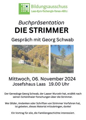 Bei der Sitzung des Landesbeirates für Chronistinnen und Chronisten ist der neue Vorsitzende gewählt worden. Es ist der Vinschger Wolfgang Thöni. Er folgt auf die Wipptalerin Rita Thaler Wieser. Er steht dem Landesbeirat der Chronisten für drei Jahre vor. Ihm zur Seite stehen zwei Stellvertreter und die jeweiligen Vorsitzenden der Bezirke Pustertal, Ahrntal, Ladinien, Wipptal, Eisacktal, Unterland/Überetsch, Burggrafenamt, Deutschnonsberg, Ulten, Passeier und Vinschgau. Wolfgang Thöni wird am Tag der Chronisten, am 8. November, offiziell den Vorsitz des Landesbeirates der Chronisten übernehmen.