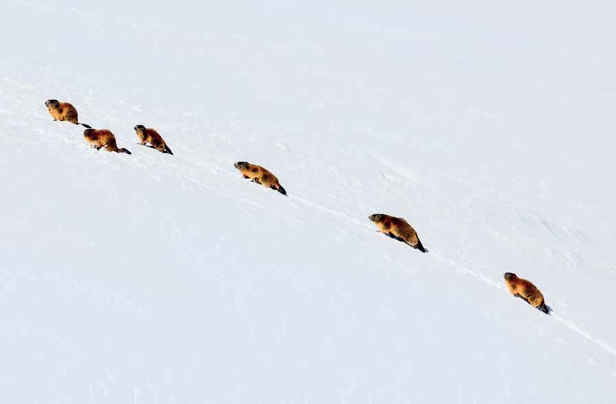 Sie werden jetzt verharren und nicht so recht an die verkehrte Welt glauben wollen. Wie war das gerade vorhin? Der Winter ist für Alpentiere der Auslesefaktor schlechthin und dann soll es Tierarten geben, die sich unter solchen Extremsituationen fortpflanzen? In der Tat, es gibt z.B. unter den einheimischen Vögeln winterbrütende Arten. Der Fichtenkreuz schnabel (Loxia curvirostra) gehört zu ihnen. Er ernährt sich fast ausschließlich von den ölhaltigen Samen der Fichtenund Lärchenzapfen. Die Flügelsamen dieser beiden Nadelholzarten reifen im Spätherbst. Und fallen im Winter aus. Für den Kreuzschnabel bringt der Winter also Nahrung in Fülle. Sein überkreuzter Oberund Unterschnabel funktioniert wie eine Spreizzange, mit welcher der Vogel die Schuppen der Zapfen geschickt aufspreizt oder spaltet und so die Samen aus den Coniferen-Zapfen hervorholt. Das winterliche Nahrungsoptimum begünstigt den Brut- und Aufzuchtserfolg und daher hat der Fichtenkreuzschnabel seine Brutperiode in den Winter verlegt. Winterbrüter ist auch der Bartgeier (Gypaetus barbatus).Als vermeintlicher Lämmergeier zu Unrecht in Verruf geraten, wurde er in den ersten Jahrzehnten des 20. Jahrhunderts durch gnadenlose menschliche Verfolgung im Alpenbogen vollkommen ausgerottet. Dank eines Wiederansiedlungsprojektes, das 1986 begonnen worden ist und dessen Gründertiere aus zoologischen Gärten stammen, ist der Bartgeier wieder in die Alpen zurückgekehrt. 1997, 11 Jahre nach dem Beginn des Wiederansiedlungsprojektes ist die erste Naturbrut in den Alpen erfolgt. Seit 2015 brütet ein Bartgeier-Paar wieder erfolgreich im Martelltal, seit 2017 ein zweites im Trafoital. 2024 gab es in Südtirol sieben brütende Bartgeierpaare. Der Bartgeier ist ein reiner Aasfresser und sein volks-