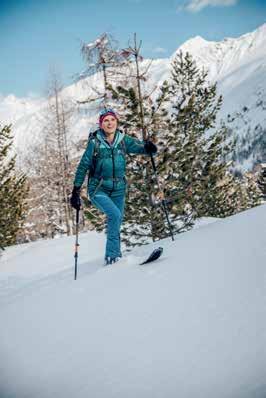 schafft er den Spagat zwischen Arbeit und Familie besser. Obwohl es viel zu tun gibt, lassen sich mit vereinten Kräften Landund Gastwirtschaft und familiäre Bedürfnisse gut verbinden. „Im Winter sind wir nicht so abhängig vom Wetter und können flexibler einteilen“, sagt Elisa, „zum Glück schaffen wir das meiste als Familienteam.“ Fabian stimmt ihr mit einem Lachen zu: „Ja, auch mein Vater und ich sind nicht nur in der Landwirtschaft tätig, wir schauen auf die Kinder, servieren, spülen ab oder stehen im Weg.“ Als Gemeinderat ist er politisch, in der Bauernjugend ehrenamtlich aktiv. Elisa berichtet von der Projektgruppe „Leidenschaft für Grund und Boden“, an der sie sich in Stilfs beteiligen. Ein gutes Leben in den Dörfern und dass sich Landwirtschaft hält, das liegt beiden am Herzen.