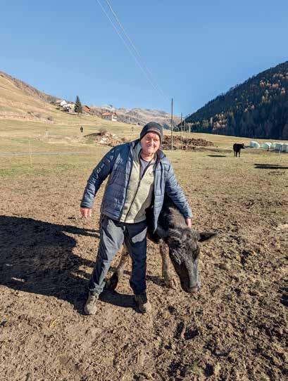 links: Die Bedürfnisse der Tiere erkennt Peter Eller schnell oben: Ochse Joe unten: Ursprünglich stammt das Wagyurind aus Japan, es fühlt sich aber auch in Langtaufers pudelwohl