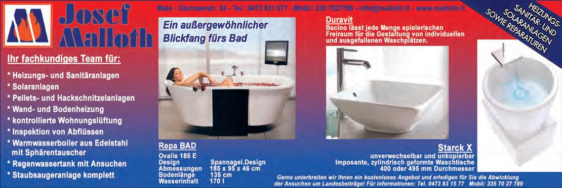 Italien und Auslandsabonnement: Euro 100 (Inkl. Porto); Schweiz: Sfr 95.Mit Namen gekennzeichnete Beiträge geben nicht unbedingt die Meinung der Zeitung wieder Im Sinne des Art. 1 des Gesetzes Nr. 903 vom 9.12.1977 wird eigens darauf aufmerksam gemacht, dass sich sämtliche in dieser Zeitung veröffentlichten Stellenangebote ohne jeden Unterschied auf Personen sowohl männlichen als auch weiblichen Geschlechtes beziehen. Die Redaktion behält sich das Recht vor, Anzeigen und Leserbriefe unter Umständen zurückzuweisen. Für die Inhalte der Werbeinserate und die damit zusammenhängenden Werbebotschaften übernimmt „Der Vinschger Wind“ keine Verantwortung. Druckreif übermittelte Unterlagen (Papierkontakte, Filme und digitale Daten) können seitens der Anzeigenabteilung nicht korrigiert werden. Für die Richtigkeit, sei es in grammatikalischer, stilistischer, inhaltlicher und grafischer Form haftet ausschließlich der Auftraggeber bzw. die beauftragte Agentur.