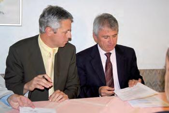v.l. Erich Ohrwalder, Raika Obmann und Karl Unterholzer, Direktor der Raika Schlanders bei der Unterzeichnung der Sponsorverträge