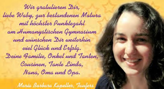 Druck: Fotolito Varesco, Auer, Nationalstraße 57 Zustelldienst: EMT Transporte, Kaltern