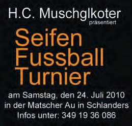 Schwank in 3 Akten von Fred Bosch Regie: Max Blaas Ort: Freilichtaufführung in der Sportzone Schlums Aufführungstermine: Do. 15.07.10, 21.15 Uhr; Fr. 16.07.10, 21.15 Uhr; Sa. 17.07.10, 21.15 Uhr; Di. 20.07.10, 21.15 Uhr; Platzreservierung: unter Tel. 333 32 98 232