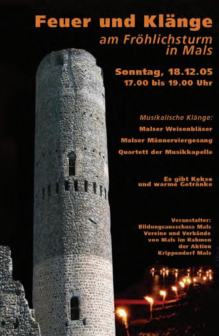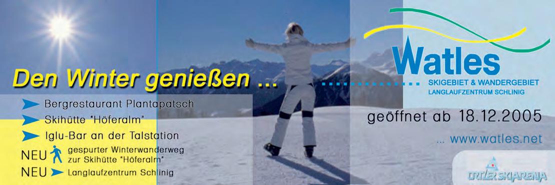 Wir, die Mitarbeiter in der Redaktion, im Sekretariat, in der Grafik und in der Verwaltung wünschen Ihnen ein besinnliches und angenehmes Weihnachtsfest. Ihre Wünsche für das Jahr 2006 mögen in Erfüllung gehen und Ihre Vorsätze sollen sich verwirklichen lassen. Ohne unsere treuen Werbekunden wäre die unabhängige Zeitung „Der Vinschger Wind“ nicht zustande gekommen. Ihnen wünschen wir unternehmerischen Erfolg und Standhaftigkeit auch im Neuen Jahr. Standhaft wollen auch wir bleiben. Für 2006 haben wir einiges geplant. Wir wünschen uns, dass Sie uns treu bleiben, uns lesen, dass Sie uns tadeln und loben. Dann wird die Mediensuppe salzig. Salzig und pfeffrig, wie unser schönes Tal. Von zintrigscht bis zeibrigscht. Den Verantwortlichen in Politik und Wirtschaft wünschen wir Klugheit und Weitblick in ihren Entscheidungen. Diese werden wir weiterhin medial begleiten, einmal tadelnd, wo nötig, einmal lobend, wo angebracht.