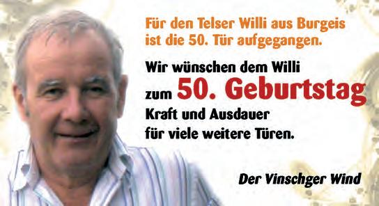 Bürozeiten: Mo. bis Fr. von 9.00 bis 12.30 und von 14.30 bis 17.00 Uhr Anzeigen, Sekretariat, Werbung: info@vinschgerwind.it