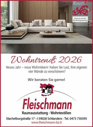 nement im Vinschgau: Euro 40; außerhalb des geografischen Bezirkes Vinschgau Euro 70 (110); restl. Italien: Euro 110; Auslandsabonnement: Euro 185 (Inkl. Porto); Schweiz: Sfr 120.Mit Namen gekennzeichnete Beiträge geben nicht unbedingt die Meinung der Zeitung wieder. Im Sinne des Art. 1 des Gesetzes Nr. 903 vom 9.12.1977 wird eigens darauf aufmerksam gemacht, dass sich sämtliche in dieser Zeitung veröffentlichten Stellenangebote ohne jeden Unterschied auf Personen sowohl männlichen als auch weiblichen Geschlechtes beziehen. Die Redaktion behält sich das Recht vor, Anzeigen und Leserbriefe unter Umständen zurückzuweisen. Für die Inhalte der Werbeinserate und die damit zusammenhängenden Werbebotschaften übernimmt „Der Vinschgerwind“ keine Verantwortung. Druckreif übermittelte Unterlagen (Papierkontakte, Filme und digitale Daten) können seitens