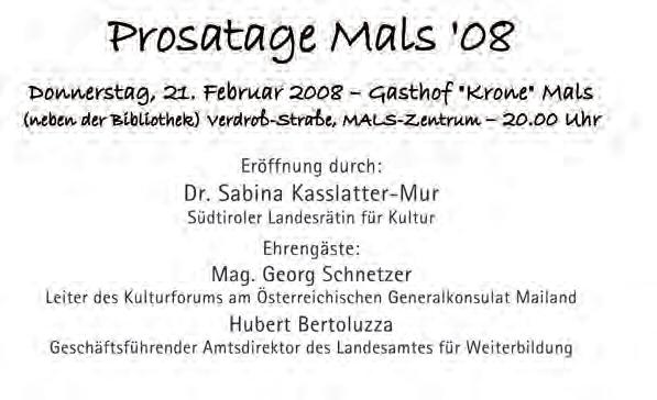 Rennradtouren und Königsetappen leichte und schwere Touren anbietet. Der Direktor des Tourismusvereins Ewald Brunner stellte die Tätigkeit für 2008 vor. Die Liste der Highlights wird um drei Großveranstaltungen erweitert. Themenwanderungen mit Karl Perfler wurden im Wochenprogramm aufgenommen. Alexandra Mair von der SMG erläuterte die Chancen am italienischen Urlaubsmarkt. Die Italiener wählen nun vermehrt Südtirol als Ferienort, und möchten hier die Menschen, die Natur und Kultur in ihrer Einzigartigkeit erleben. Sie suchen das Besondere, das Traditionelle und typische Produkte und erwarten sich Sprachkompetenz und geführte Wanderungen auch in italienischer Sprache. Also muss man sehr gut gerüstet sein, um diesen Erwartungen zu entsprechen.