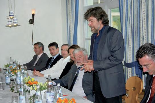 v.l.: Franz Marx, Ulrich Linser, Martin Pedross, Irene Kustatscher, der alte und neue Bezirks-Präsident Hans Moriggl, Reinhold Messner und Udo Perkmann