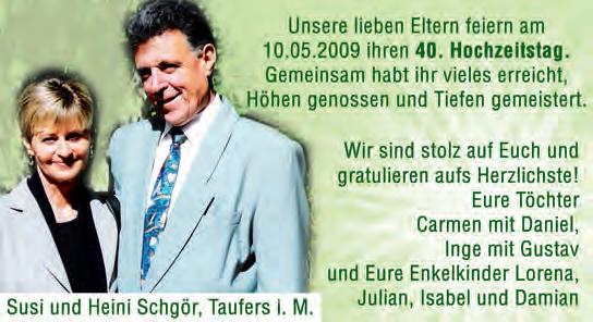 scher: Neben Andreas Heinisch und Telser Schwabl Gertrud ist Siegfried Telser gewählt. Ihren Kandidaten nicht durchgebracht haben die Schliniger. Durchgerasselt sind auch jene zwei Kandidaten, die sich den SVP-BM Vorwahlen gestellt hatten: Helene Dietl Laganda und Georg Flora. (eb) Plaus. Für eine Revolution reichte es nicht ganz für die Bürgerliste bei der Gemeinderatswahl in Plaus, aber ein „Veilchen“ war es allemal, das man der Edelweiß-Partei verpassen konnte. Mit einem knappen Vorsprung von 51 Stimmen, konnte sich Jürgen Klotz (SVP) gegen Christoph Gögele (Bürgerliste) durchsetzen und wird somit der Gemeinde Plaus die kommenden sechs Jahre als Bürgermeister vorstehen. 380 Stimmzettel (Wahlbeteiligung 80%) wurden abgegeben, dabei konnte Klotz 190 Stimmen (57,75%) auf sich vereinen, während Gögele 139 Stimmen(42,25%) bekam. Bei der Wahl des Gemeinderates erhielt die Bürgerliste 35% der Stimmen und konnte sich damit um einen Sitz, auf nun fünf Mandate verbessern. Die SVP erreichte 65 Prozent (-8,5%), büßte einen Sitz ein und hält nun zehn Gemeinderats-Sitze. „Sehr zufrieden“ mit dem Ergebnis der Wahlen zeigte sich dann auch Christoph Gögele von der Bürgerliste. Man sei sehr froh, dass man zugelegt habe und biete der SVP die Zusammenarbeit an, sofern man „inhaltlich zusammenkomme“. Auch eine Mitarbeit als Vizebürgermeister könne er sich vorstellen.