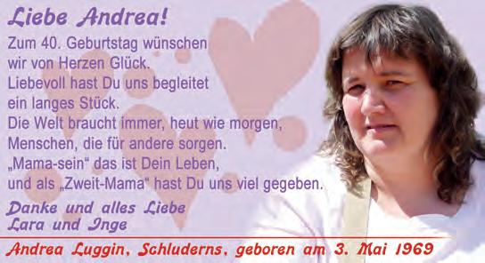 Redaktion: Ludwig Fabi (lu), Klaus Abler (klab), Erich Daniel, Angelika Ploner (ap), Brigitte Thoma (bbt), Monika Feierabend (mo), Sigrid Zagler (sig), Karin Thöni (klf), Philipp Trafojer (jan), Maria Gerstgrasser (ria), Elke Wasmund (ew), Brigitte Maria Pircher (bmp), Sarah Stecher (sar), Julia Tapfer (ju), Sarah Tappeiner (sat), Beat Grond (bg), Bruno Telser (uno), Martin Platzgummer (mp), Renate Eberhöfer (re)