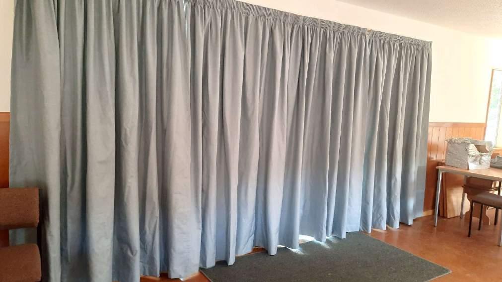 At the end of the day, we went for taste and style and purchased something that would set off the timber on the walls. Because we required a number of curtain pairs of different sizes, and we were relying on getting these for sale price, the store didn’t have all the sizes that we needed. So, regretfully, Mel and I had to retreat to a cafe for lunch while we made the curtain order on-line. The curtains arrived within the week and we did a quick sewing job to shorten a couple. They are now hanging stylishly in the Clubrooms.