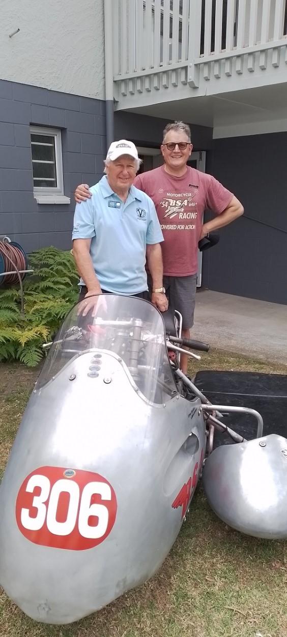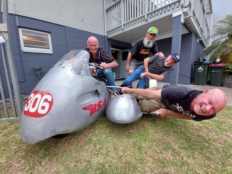 Lynda, Malcolm Brown and myself headed to the motorcycle meeting in the sunshine. Jeremy Lambert had opened up the club rooms and helped our guest speaker, Tim Gilbert bring his classic racing BSA outfit into the backyard.