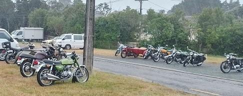 We had a nice selection of bikes parked out the back - Norton ES2, 600 Panther, Honda CBX, Triumph TR6, Triumph Sprung hub Thunderbird, 500 Yamaha, Modern Triumph Thruxton, Triumph Bonneville & sidecar, late Harley Davidson and sidecar, BMW 800, Triumph Bonneville, Moto Guzzi, Norton 750, and the new Triumph 400 single, owner Garry Mitchell let me have a test ride up the road, a very nice bike, I've been told that 80 new Triumph 400 singles arrived in the past month, and all are sold - bugga!. (I have since been down to NV Motorcycles in Morrinsville, and had a one hour test ride, I then put down a deposit for a black one, next shipment arrives in March.)