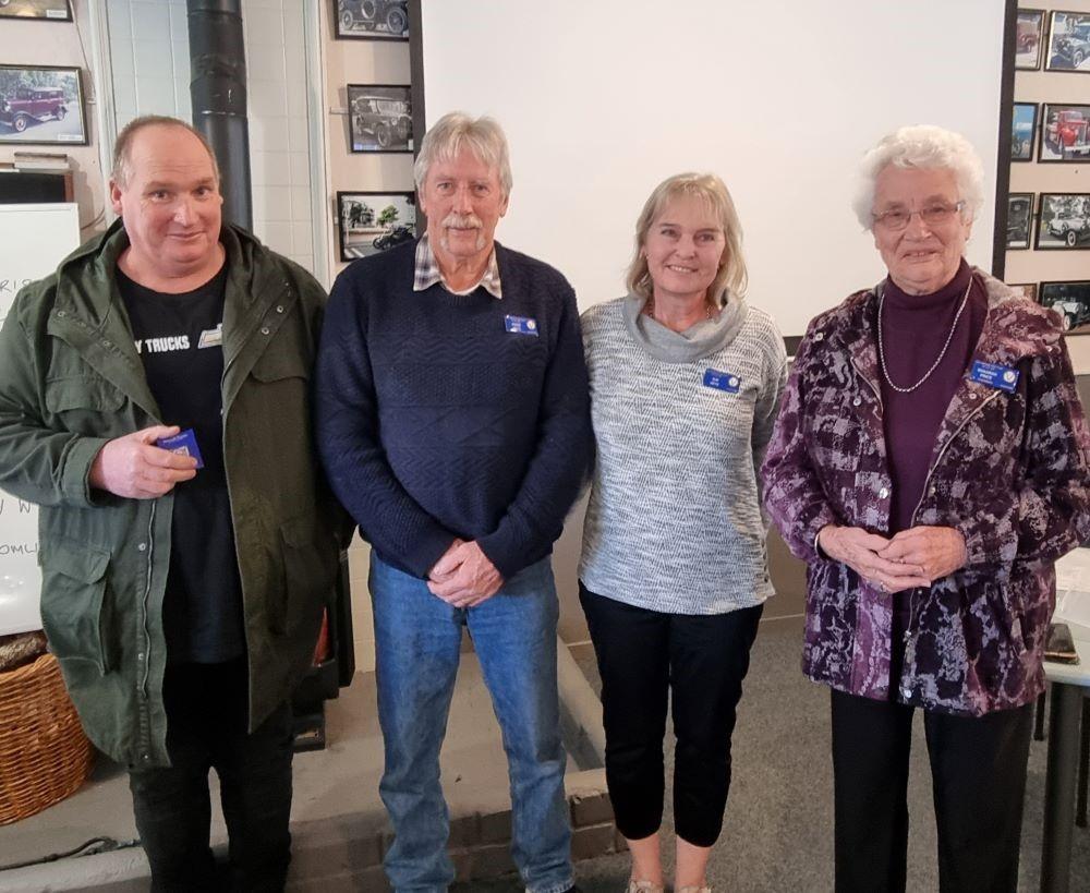 It was a pleasure to have Mrs Royce Shears come and present the Bill Shears trophy, an award given to a member/members for outstanding service. This year it was awarded to Russel and Jocelyn McAlpine. Russel and Jocelyn were also presented with a Prezzie Card and bouquet of flowers for their involvement in our Branch over the last 50+ years – Russel having been Chairman and overseer of both the building of the barn and also the re-roofing and painting last year.