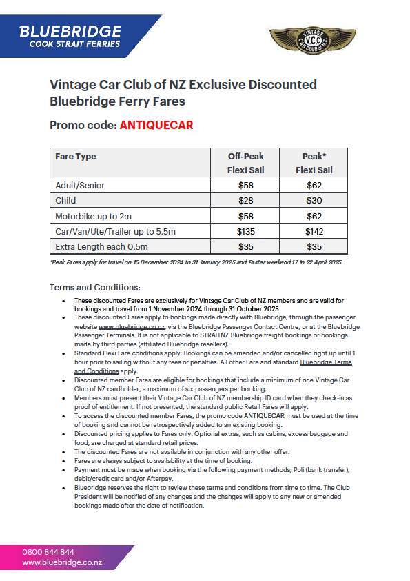 The Road code must be obeyed at all times. One person in each vehicle must be a member of the Vintage Car Club of New Zealand and may be called upon to show their current membership card.