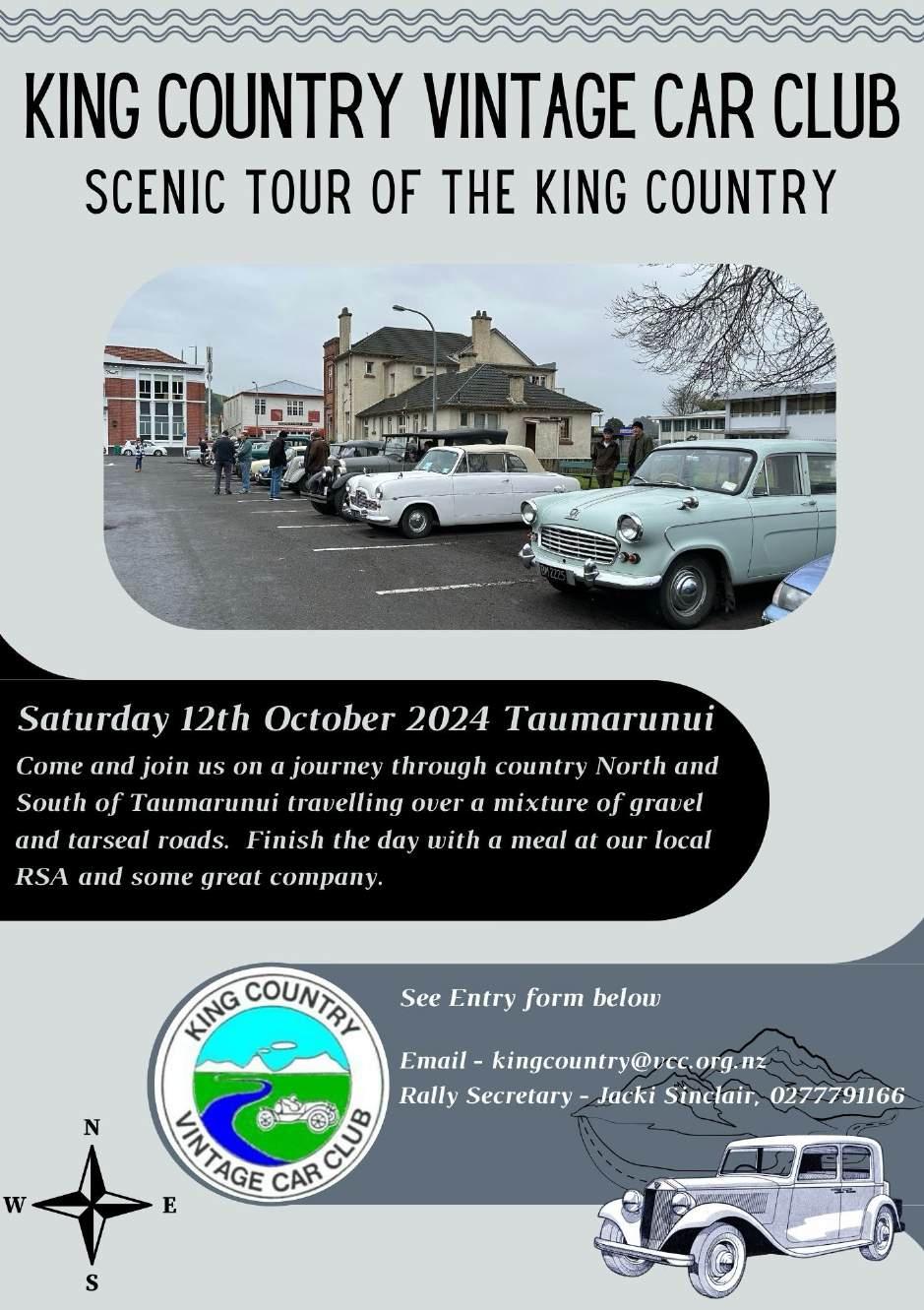 The Scenic Tour of the King Country is an informal rally through the roads of the King Country, we have some questions for you to answer along the way and along with silent checks.