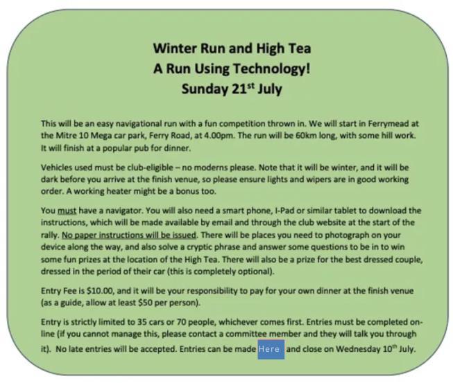 This month I will be working on the “calendar of events” for 2025. This is a huge job. Neil, Henry and myself will work with the motorcycle section calendar, the national calendar and numerous other events to try and make everything fit. The calendar also gets discussed at our committee before being presented to the AGM.