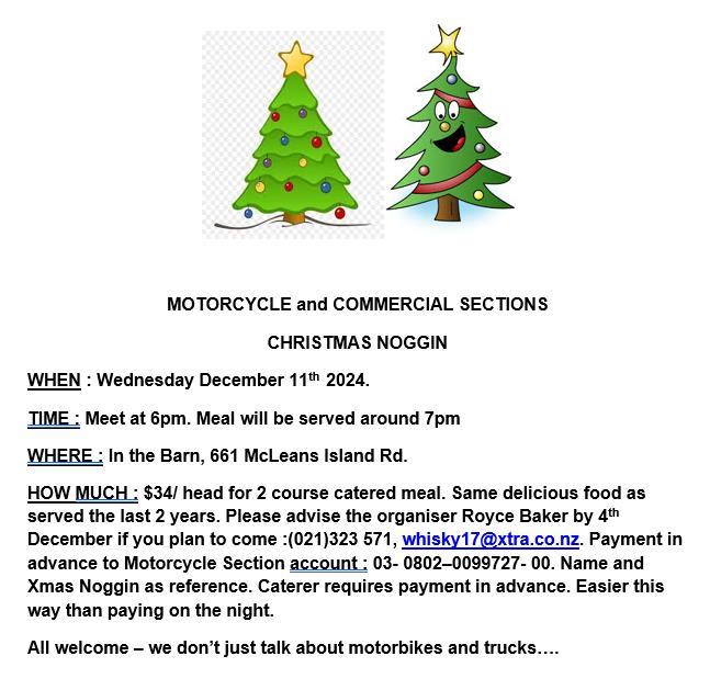 Hi everybody, well another financial year for the club comes to an end 31st October. SUBSCRIPTIONS are due NOW if you haven’t paid already you need to attend to this now to avoid the risk of being removed from the membership in March 2025. Accounts were sent out in September as per normal, If you still have not received yours or can’t remember if you have paid then please contact the office as soon as possible (03 366 4461 between 9.30am and 1.30pm).
