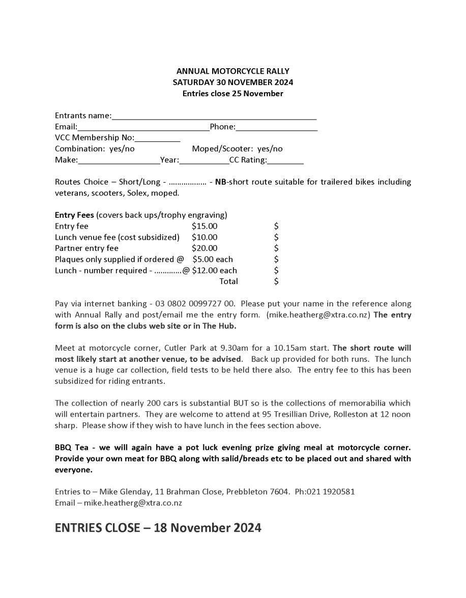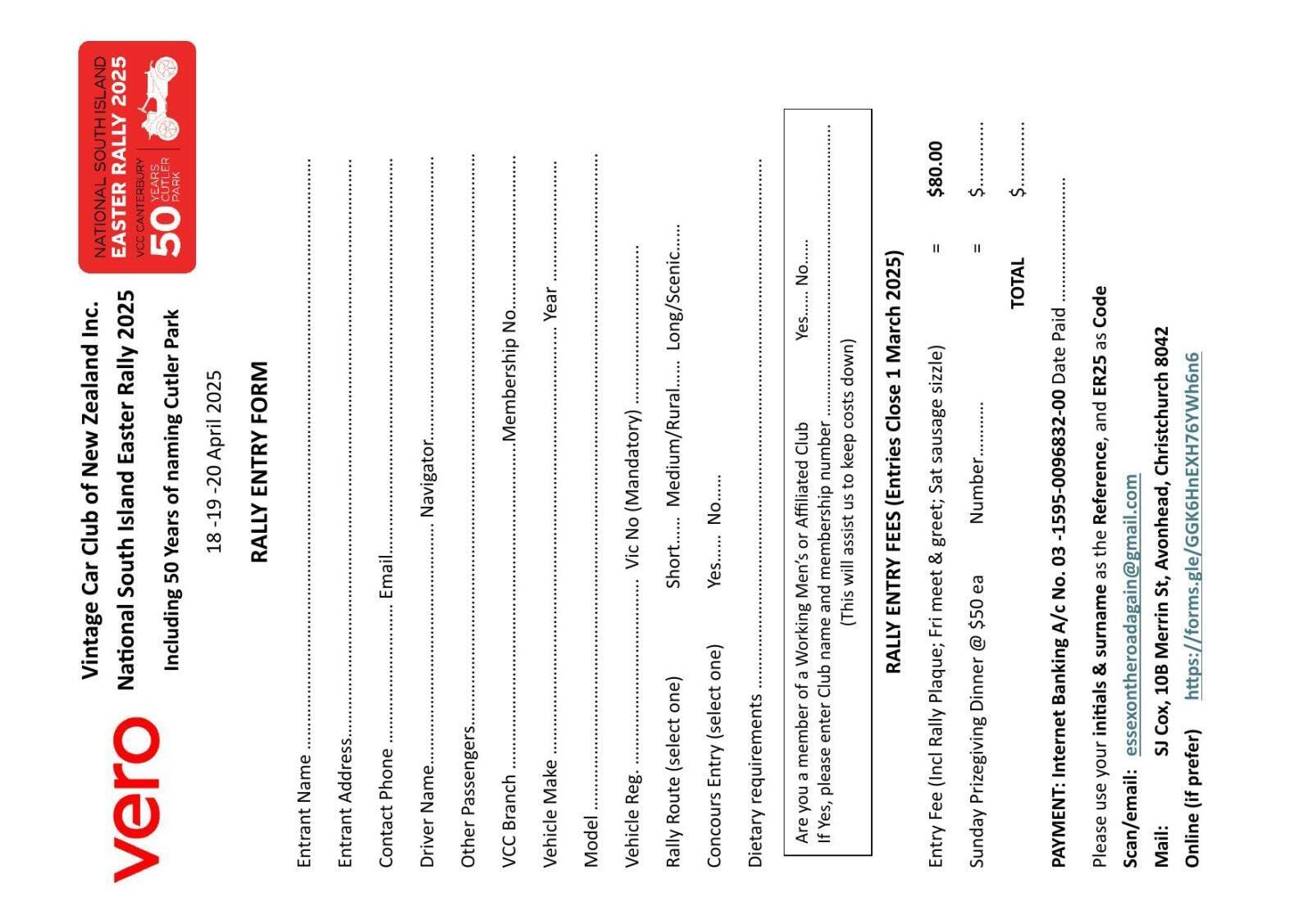 All payment details are on the entry form. You will get an automatic email as soon as you send in your entry, but I won’t be sending out your rally number and confirmation of your payment until after Labour Weekend, as I am currently out of the country for a couple of weeks.