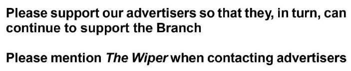The Wiper is also available by email, either as a link to an online version or as a pdf file. The pictures are in colour, it arrives earlier, (most of) the hyperlinks work – and it saves us money!