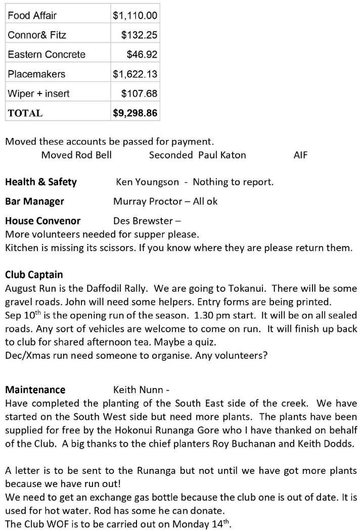 The maim items I considered to be of interest to Gore members were: Updating of the online Branch Manual. Now Diane Quarrie is no longer Club President she said that she will have more time to do this.