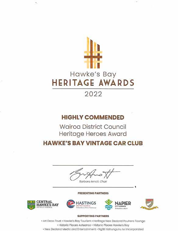 Graham and I attended the Hawke’s Bay Heritage Awards prize giving at the revamped Hastings Municipal Building, the Branch was entered in the Heritage Heroes section under the banner of “Driving our History”. The Club won a Highly Commended Award which I was really pleased with. The aim in entering the awards was to raise the profile of the club, to increase awareness of what we do and publicise the fact that we represent vehicles up to 30 years old.