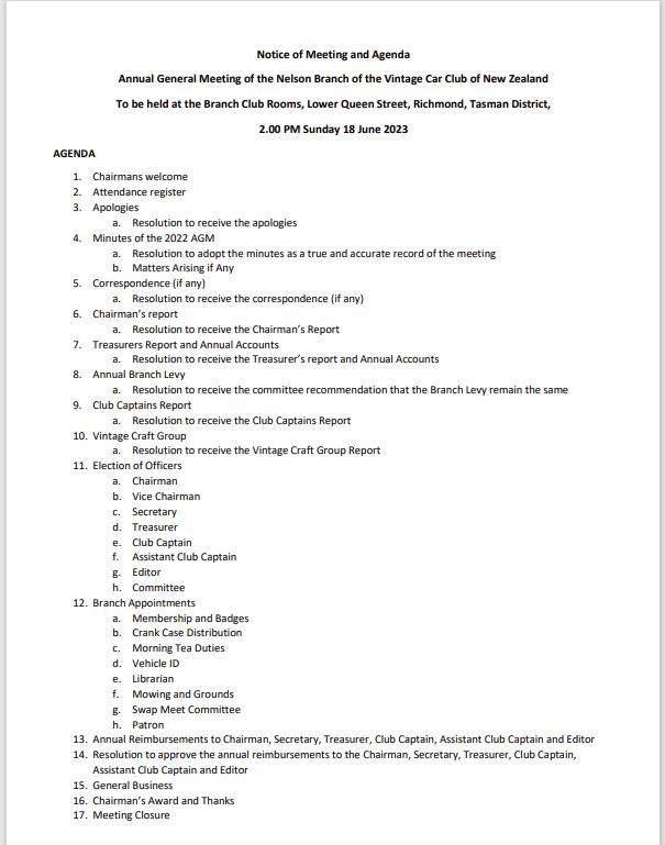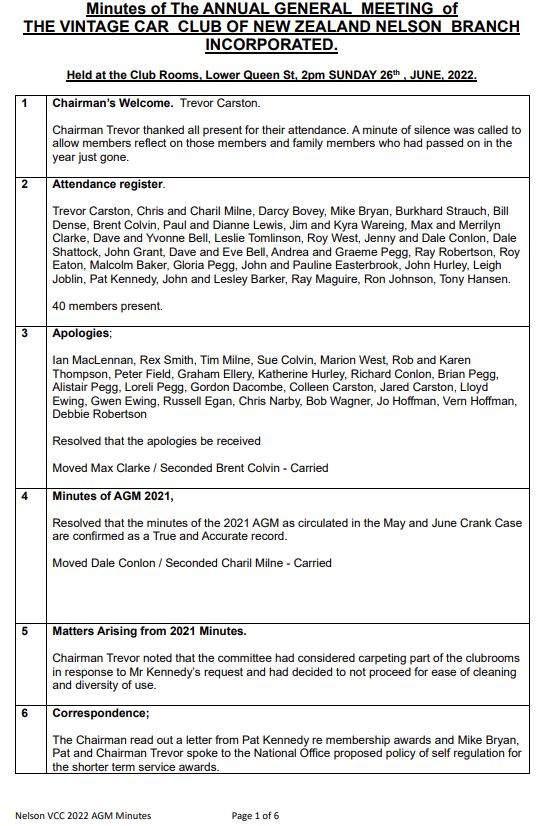 This edition of the Crankcase is a little larger than normal because it covers both May and June as I am out of the country for 6/7 weeks and of necessity this edition has the Notice of AGM meeting and agenda , Nomination forms, 2022 AGM minutes, Treasurers Financial Reports for the 2022-2023 year