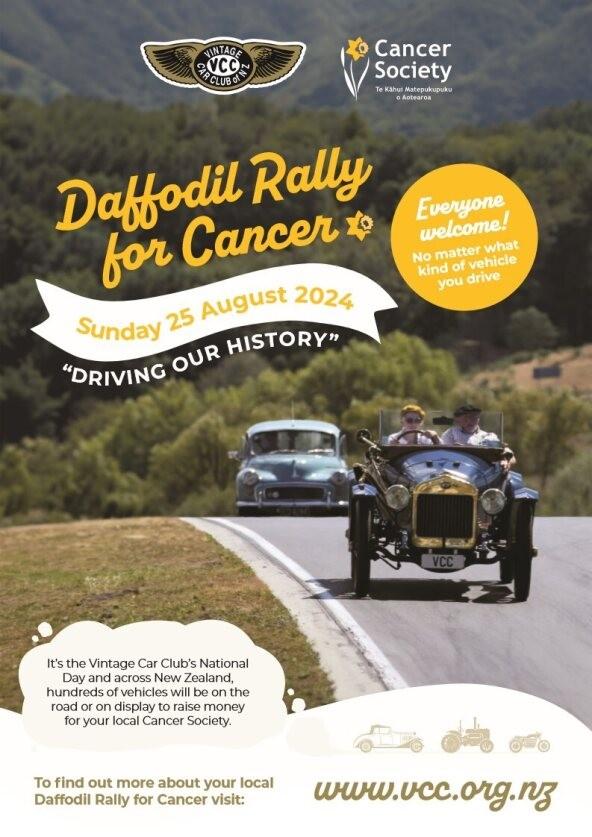 Otago Branch - Meet at 1pm at the Victoria Road Ice Stadium Car Park for Instructions to take you to Wingatui Race course for Public Display. BBQ Sausages and Coffee cart available. Dress up yourselves and your cars to the Daffodil Day theme. Donation of $10 per car goes to your local Cancer Society.