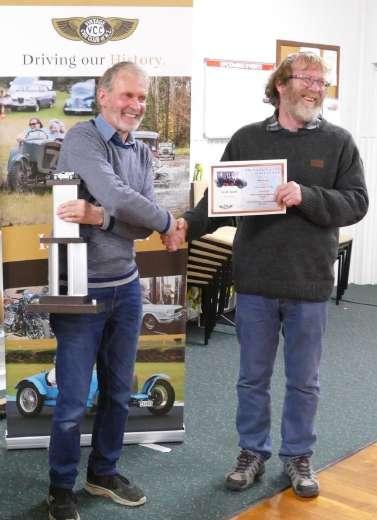 John L Goddard Trophy – was presented to Robert Bains who has organized the Gumboot rally event outside of Taihape for the past 40 years.