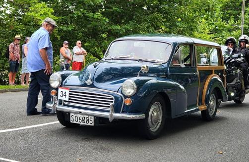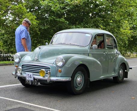 Above: 1962 Morris Minor with Fiona McIvor waiting for the green light.