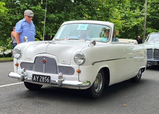 Below left: Jim Bilby set for a flyer in his 1955 Ford Zephyr convertible.