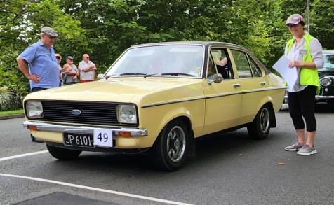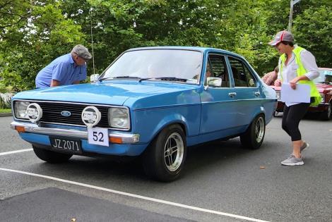 Above: Sam Wilson patiently waiting to get his 1958 Morris Minor 1000 underway. Left: Another 1980 Ford Escort. Lee Turner is rearing to get her car away.