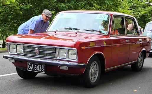Above left: Kaye Smith driving her 1972 Fiat 125 Special.