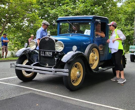 Below left: 1929 Ford Model A Pickup piloted by Chris Edwards waiting patiently.