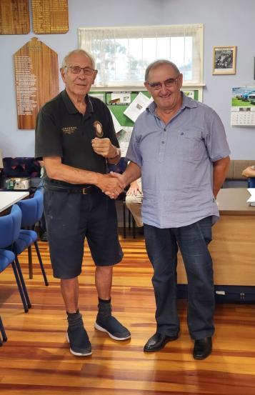 Right: Andrew on right presents to Mike Marshall his 25 year badge