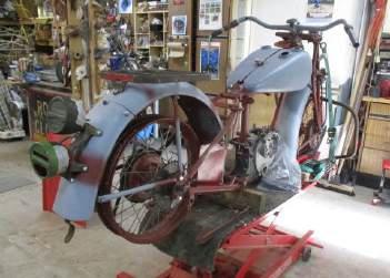 MotorcyclesinRob’scollectionrangefromanoriginalcondition1918 Excelsior(ralliedthisyearonourTedGreenRally)toa1930Indian Chout(thenameisacombinationofChiefandScoutmodels),a1942 IndianMilitaryScoutunderrestoration,a1947Chief(restored)a1927 Chiefawaitingrestorationandevenamid70sIndian-badged2-stroke mini-bike.