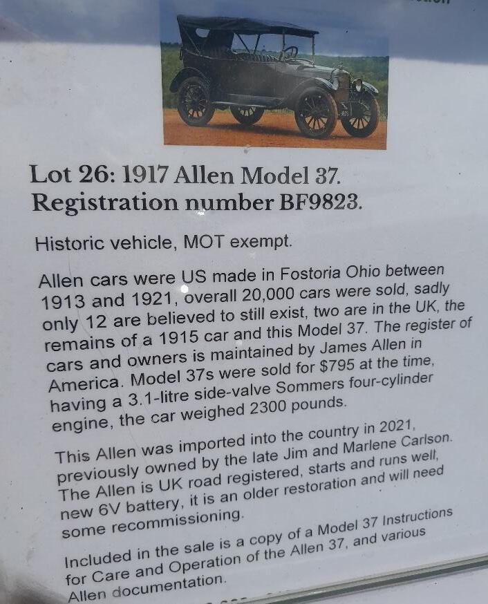 After at least 60yrs interest in Vintage cars I came across this Allen yesterday, up for auction on Sunday. I had never heard of them. It's in useable condition, excellent upholstery and tyres, but body is best described as a very old restoration. Expected to make between $NZ20 to 30k.