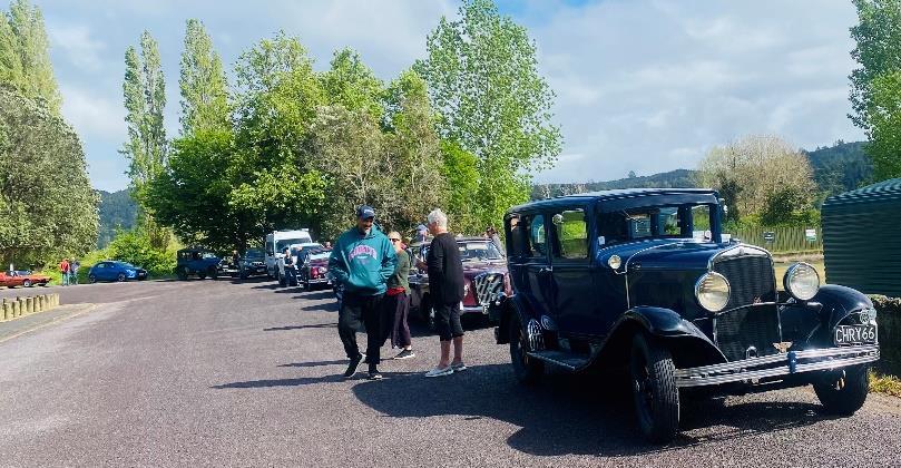 We had a great gathering of people and cars in Kawakawa for the event and the weather again gave us the break we wanted. A cool wind followed us but apart from the odd small shower while driving, the day was good.