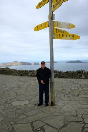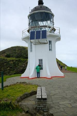 pick up a pie for breakfast and a sandwich for lunch, we headed up the road for the Cape. There was a chill wind but the weather was fine and the road was fabulous. We all arrived safely and most of us took the 500m walk from the car park to the light. When Owen and I arrived at the light we found Andrew Lunt polishing the windows of the lighthouse and Paul Collins charging folks to take photos with him at the signpost. (Andrew later explained that he was removing graffiti).