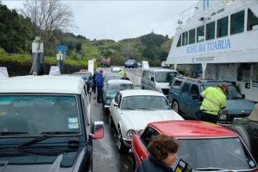 Monday: After another pleasant meal we hit the road for a cruise south through Ahipara, Herikino and Broadwood to Kohukohu and the Hokianga ferry over to Rawene. Things went a little awry at the ferry as we found that a small party had missed the instruction that all ferry tickets had been pre paid and they went across without waiting for the rest. There was also some jostling (almost ungentlemanly conduct) boarding the ferry, but despite that we all