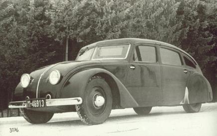 Tatra's specialty was luxury cars using the most recent technology, going from air cooled flat twins to fours and sixes, culminating (briefly) with the OHC 6 litre V12 in 1931. In the 1930s, under the supervision of Austrian engineer Hans Ledwinka, his son Erich and German engineer Erich Übelacker, and protected by high tariffs and absence of foreign assemblers, Tatra began building advanced, streamlined cars after obtaining licences from Paul Jaray, which started in 1934 with the large Tatra 77, the world's first production aerodynamic car. The average drag coefficient of a 1:5 model of the fastback Tatra 77 was recorded as 0.2455. It featured (as did almost all subsequent big Tatras) a rear mounted, air cooled V8 engine.