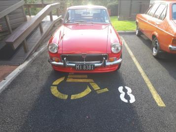 Friday: The tour started at our clubrooms as we assembled at 8.30 and route instructions were distributed. In all we had 23 cars on the tour although a couple of those joined us enroute. There was a nice mixture of vehicles, about half were moderns and the remainder were 60s/70s with one ’38 packard, one Model A Ford and a rather splendid Ford Prefect Tourer from the early 1950s. My co driver on the tour was Owen Sturgess, and although he didn’t actually drive the MG, he navigated and plotted ways to tease Paul Collins about the instructions.