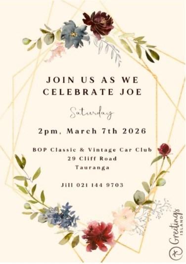 It would be appreciated If club members wishing to attend Joe’s memorial service on 7th March, could arrive in Veteran, Vintage or Classic Cars as a show of support