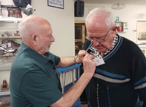 A highlight of the evening, for me was to present Win Bishop with his 25-year membership badge. Typical of Win he did not want a fuss or official presentation, so Daphne got the badge and we made it a surprise award. Congratulations Win, you deserve it.